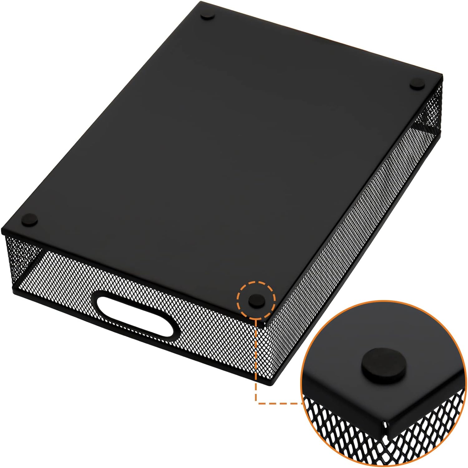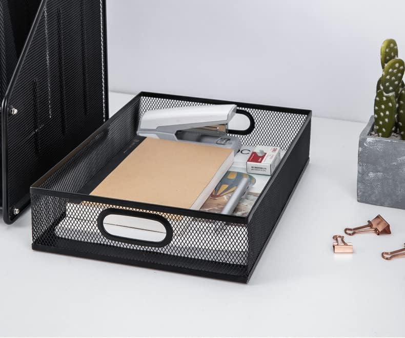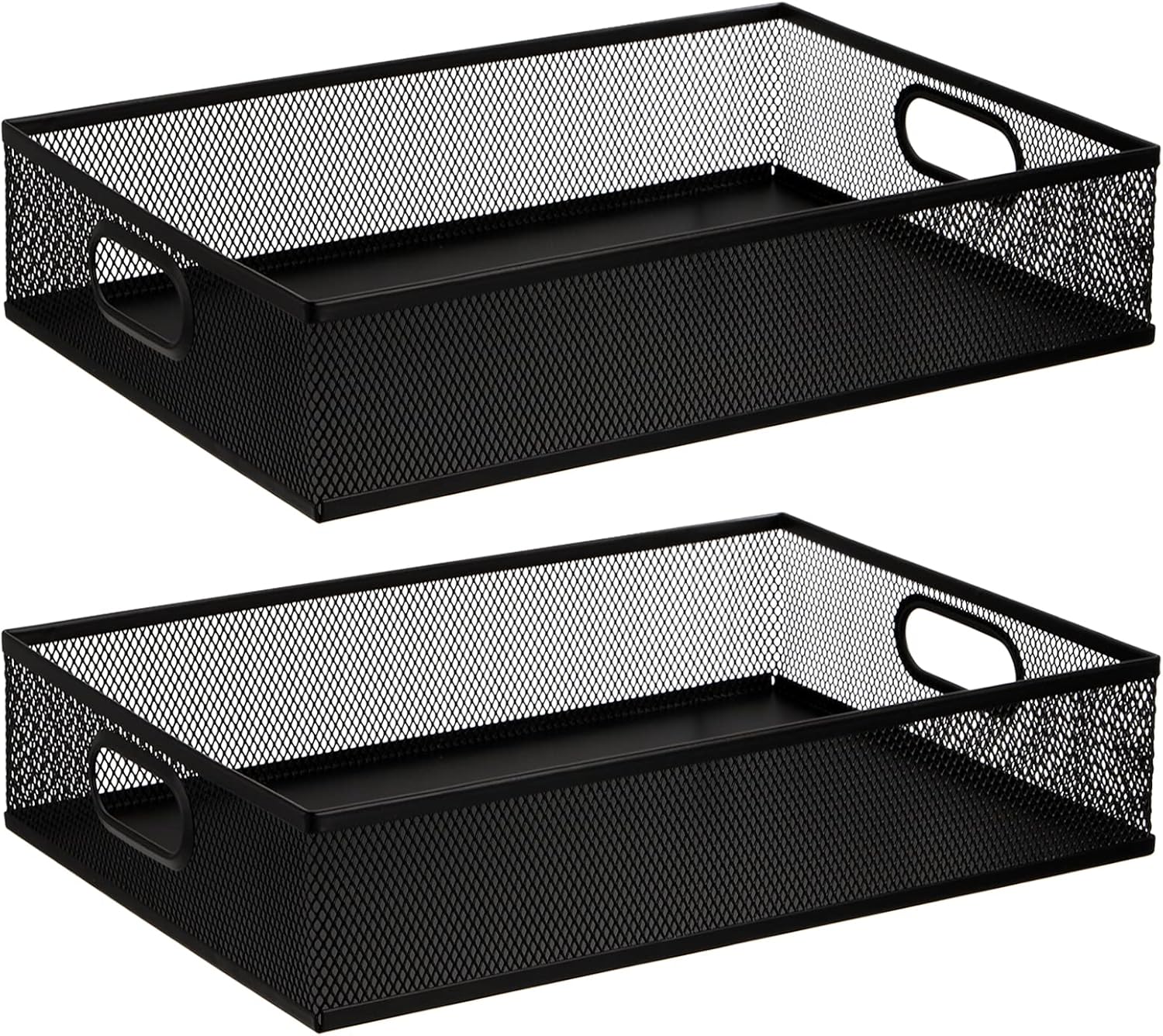 Elsjoy 2 Pack Desk Drawer Organizer Tray, Metal Mesh Desktop Storage Tray Office File Organizer with Handle, Portable Large Storage Basket for Office Supplies, Craft, Magazine, Paper